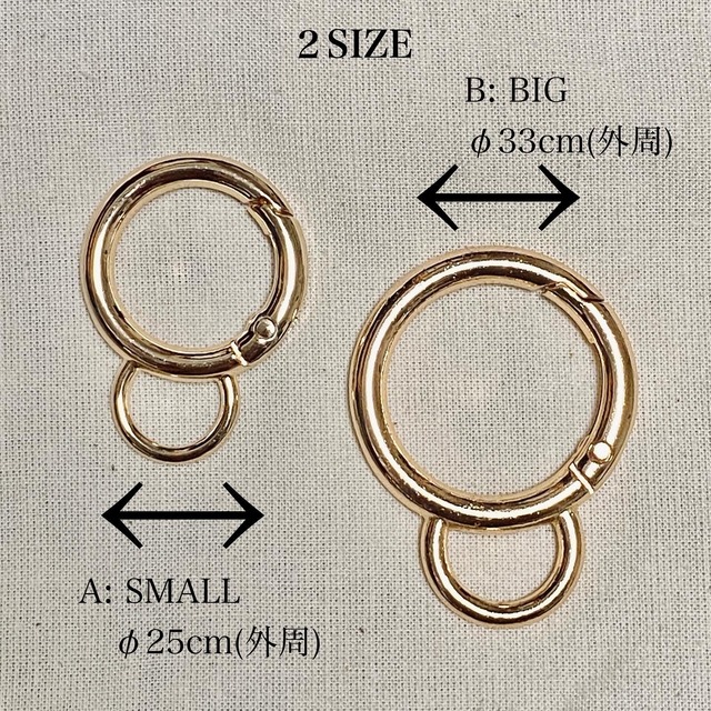 小さな帽子ブローチや小さな帽子クリップを バッグチャームやストラップチャームとしてお使いいただくためのチャームパーツです。 こちらはチャームパーツのみの販売です。 小さな帽子ブローチは付いていませんのでご理解ください。 2サイズからお選びいただけます。 【サイズ】 A.SMALL φ25cm(外周) B.BIG φ33cm(外周) 【Material】 金属(金属アレルギーに対応はしていません) 【Color】 GOLDのみ 【Attention】 水に濡らした状態で放置しておきますと錆や不具合の原因となります。 濡れてしまったら、乾いたタオルなどで水分を拭き取ってください。 高温多湿の場所で保管しないでください。 涼しい風通しの良い場所で保管してください。