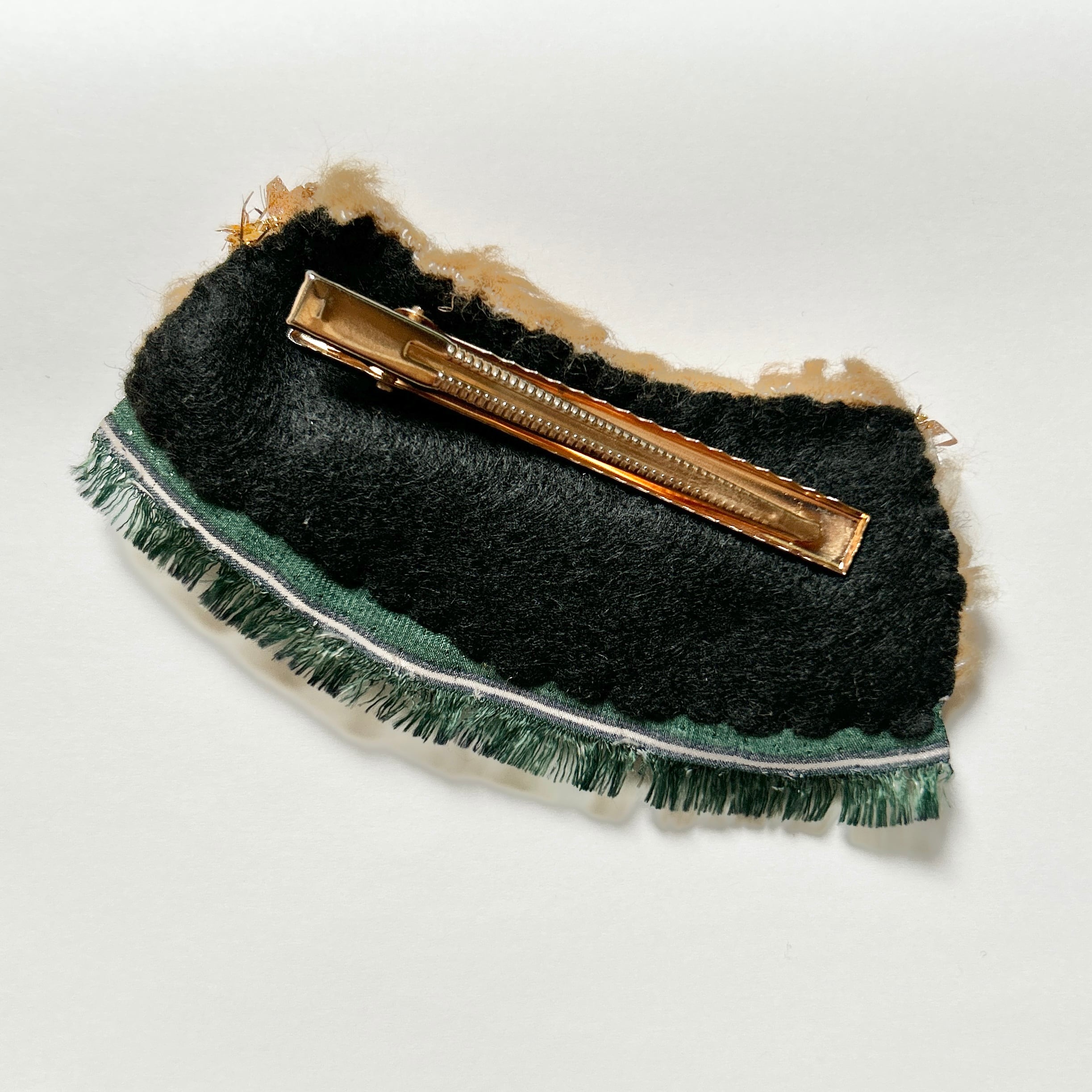 ボア生地と柔らかな光沢ストライプ生地のハギレを使用したヘアクリップ