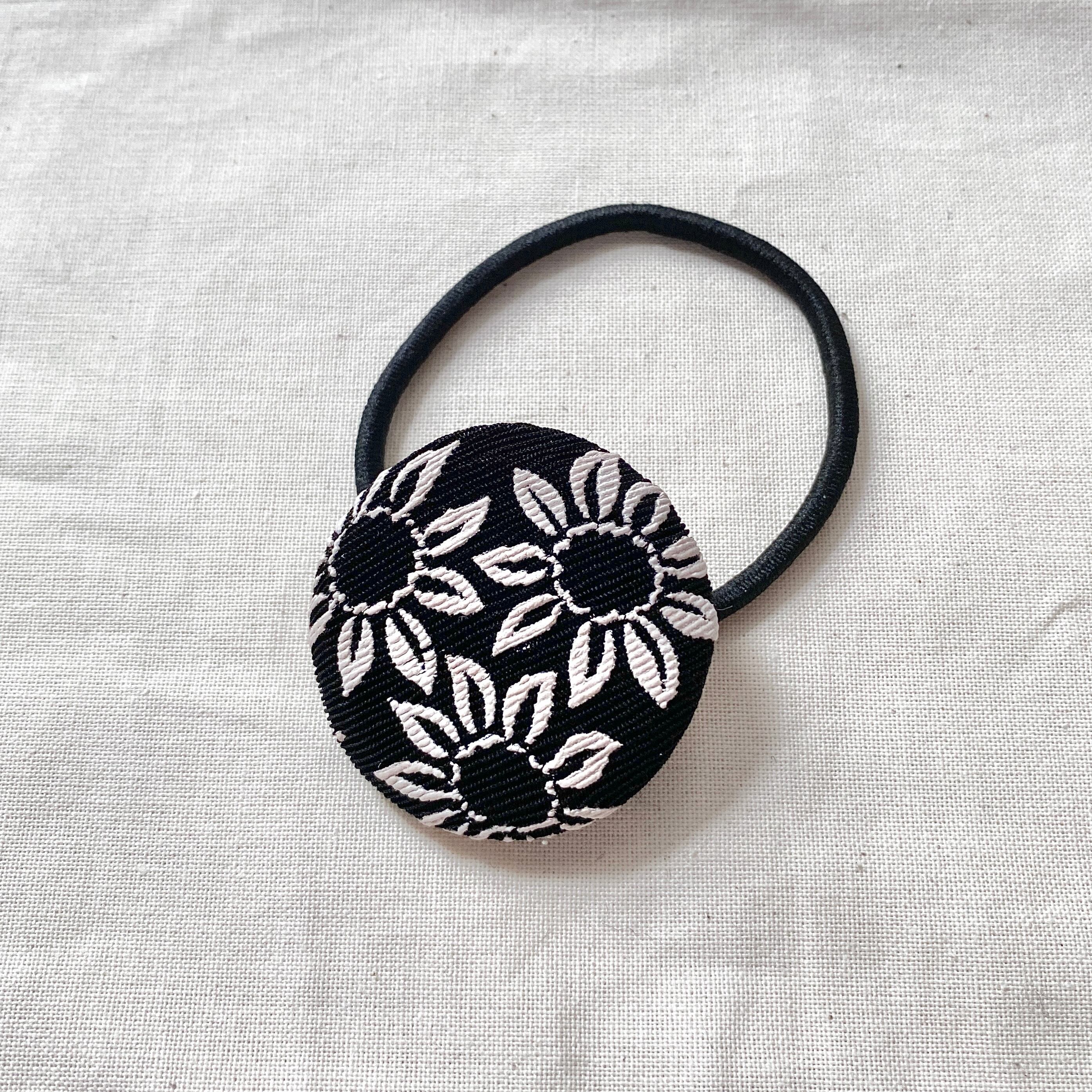 ヴィンテージドレスをアップサイクルした花柄ドットのコンチョポニー