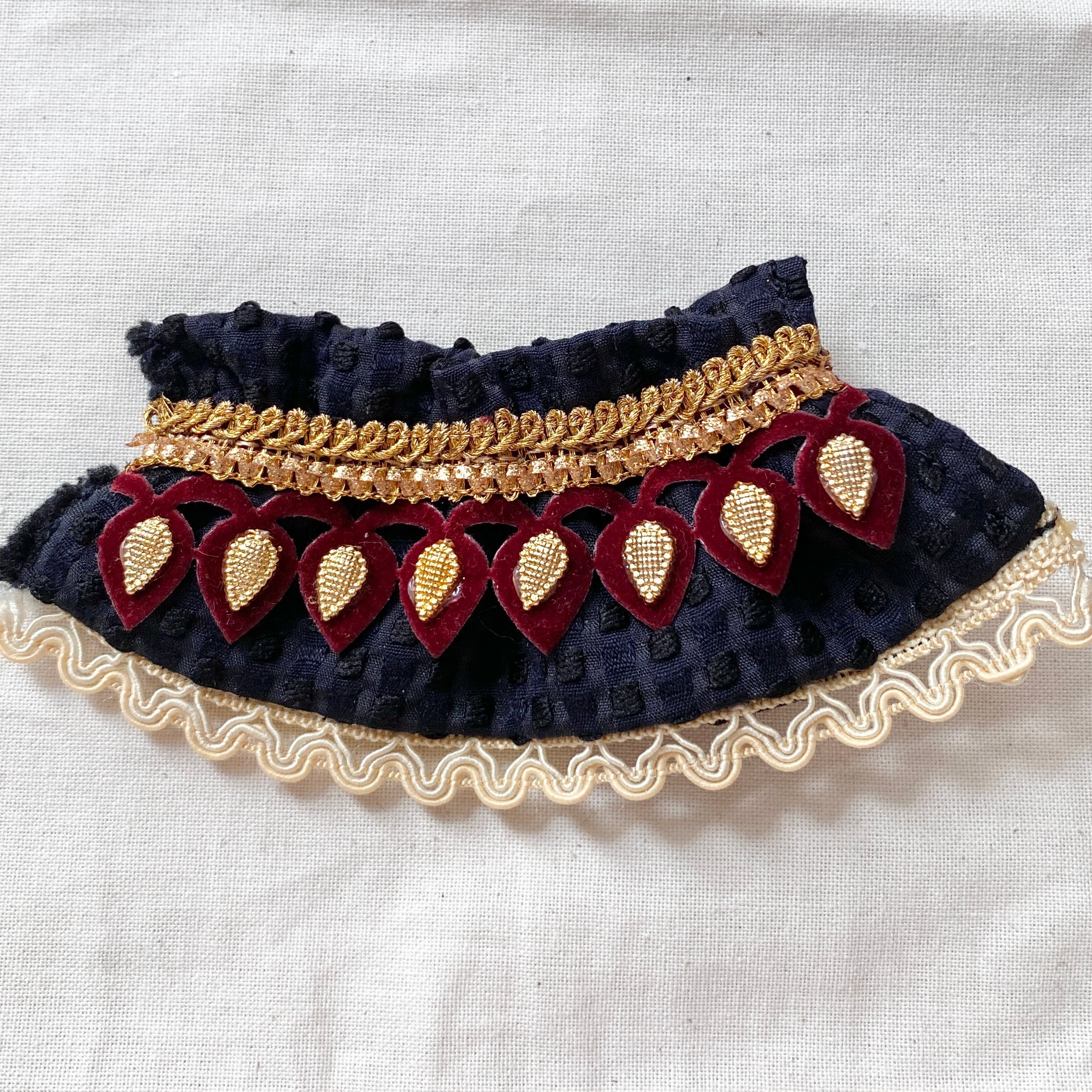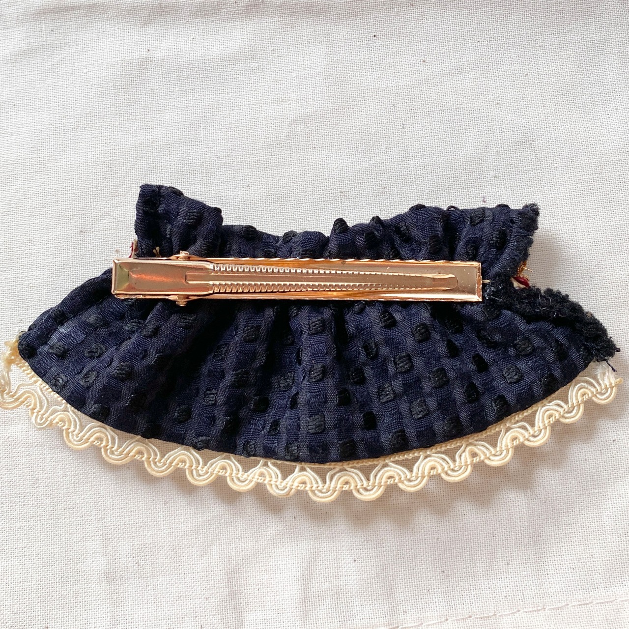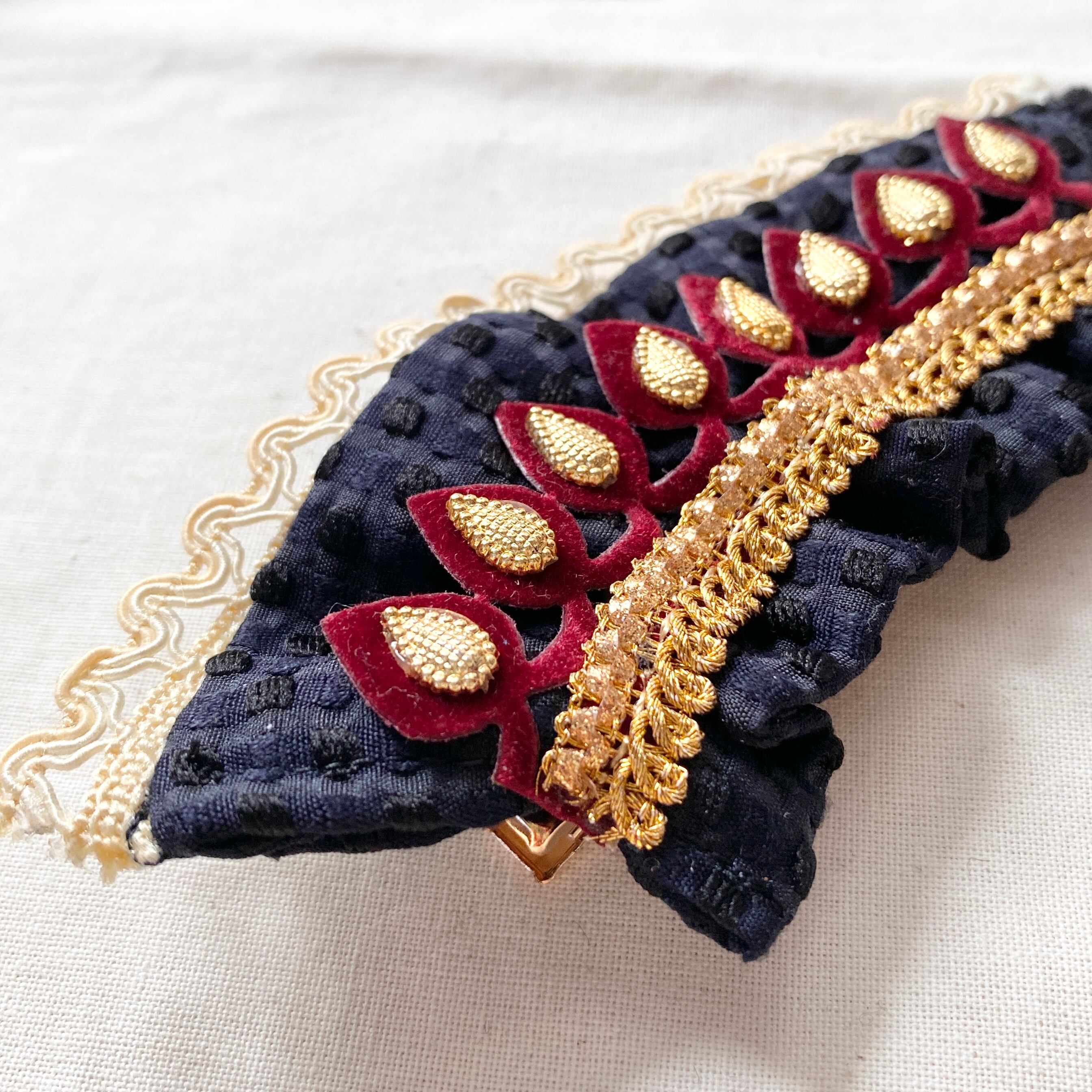 ・落ち着いたネイビーカラーとワインレッドのゴールドテープがクラシカルな印象を与えてくれるヘアクリップ