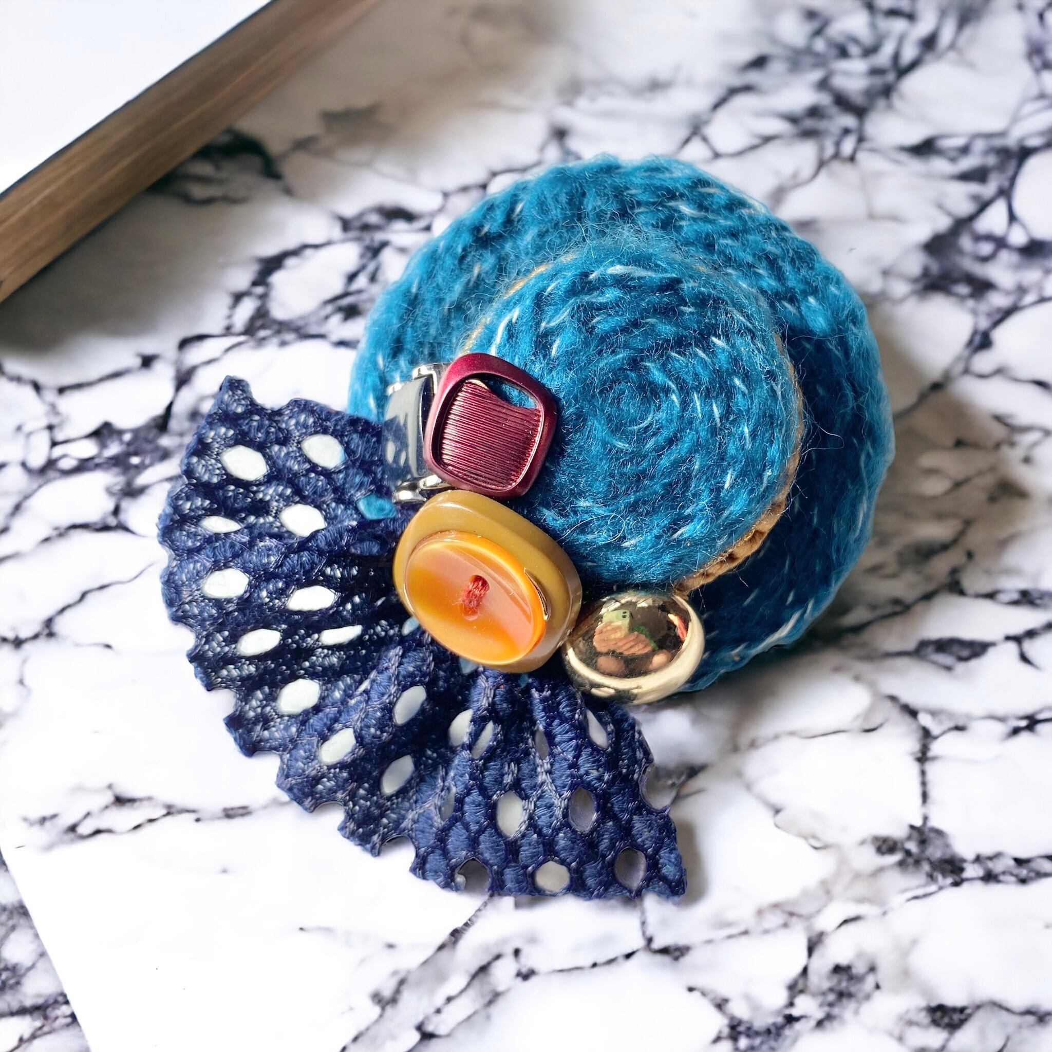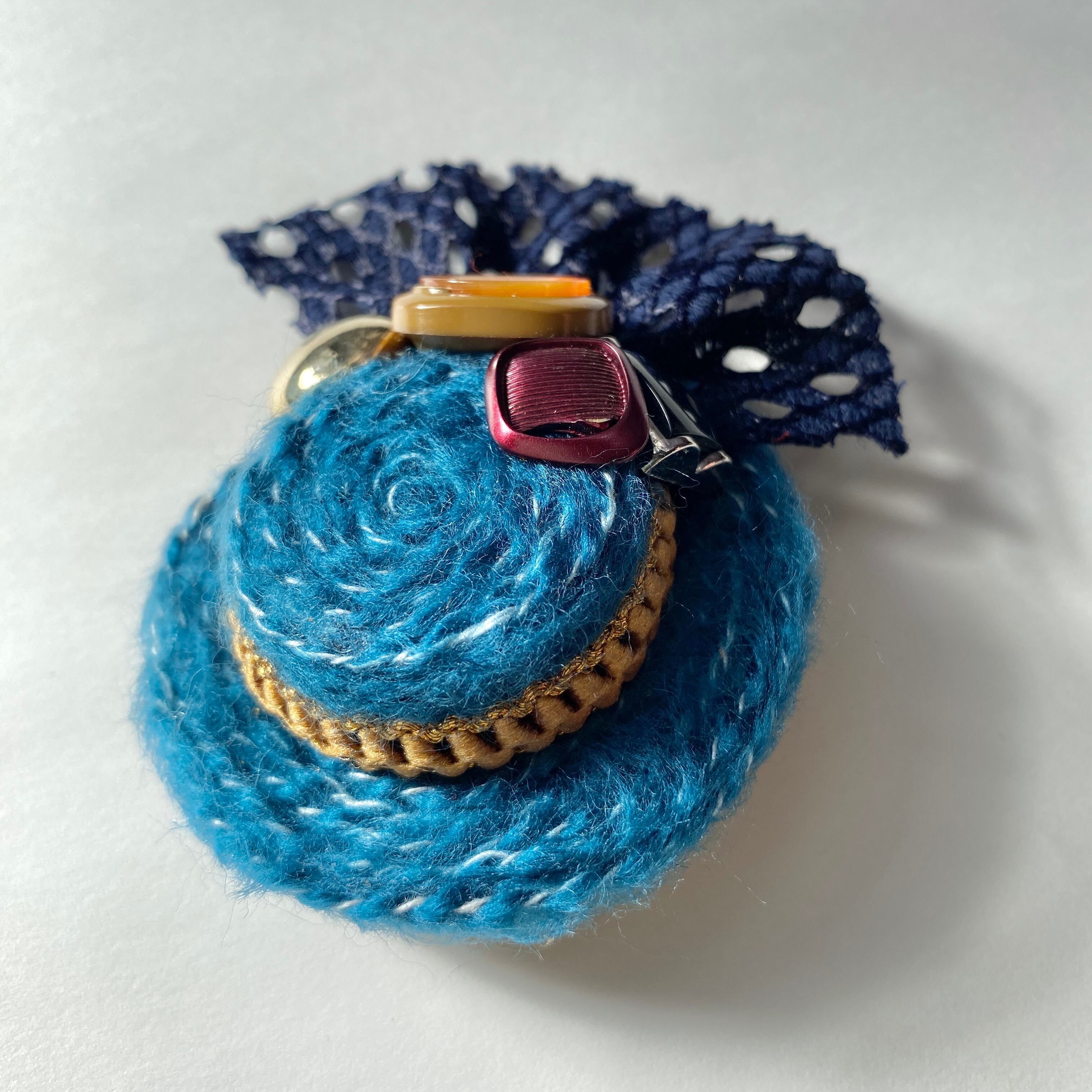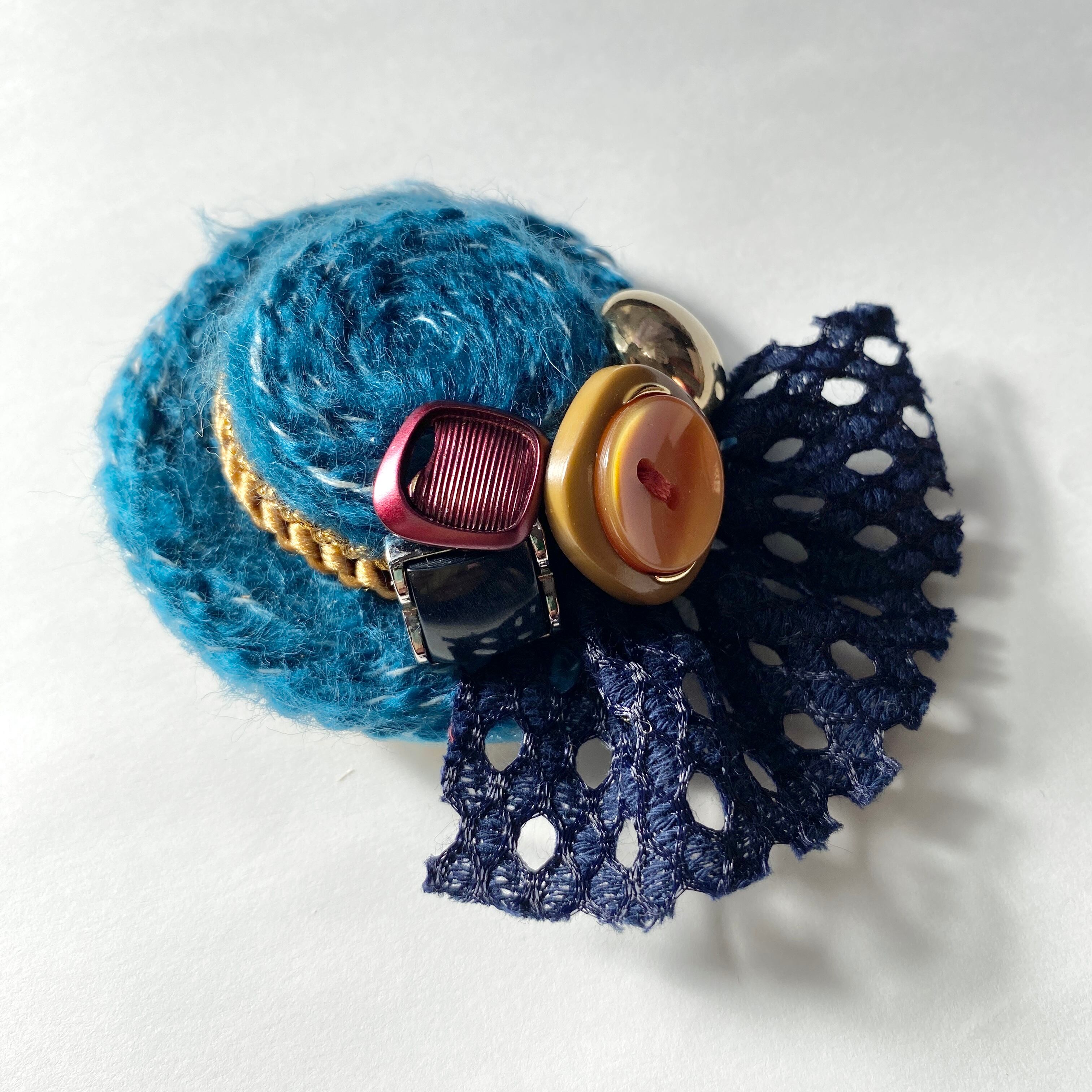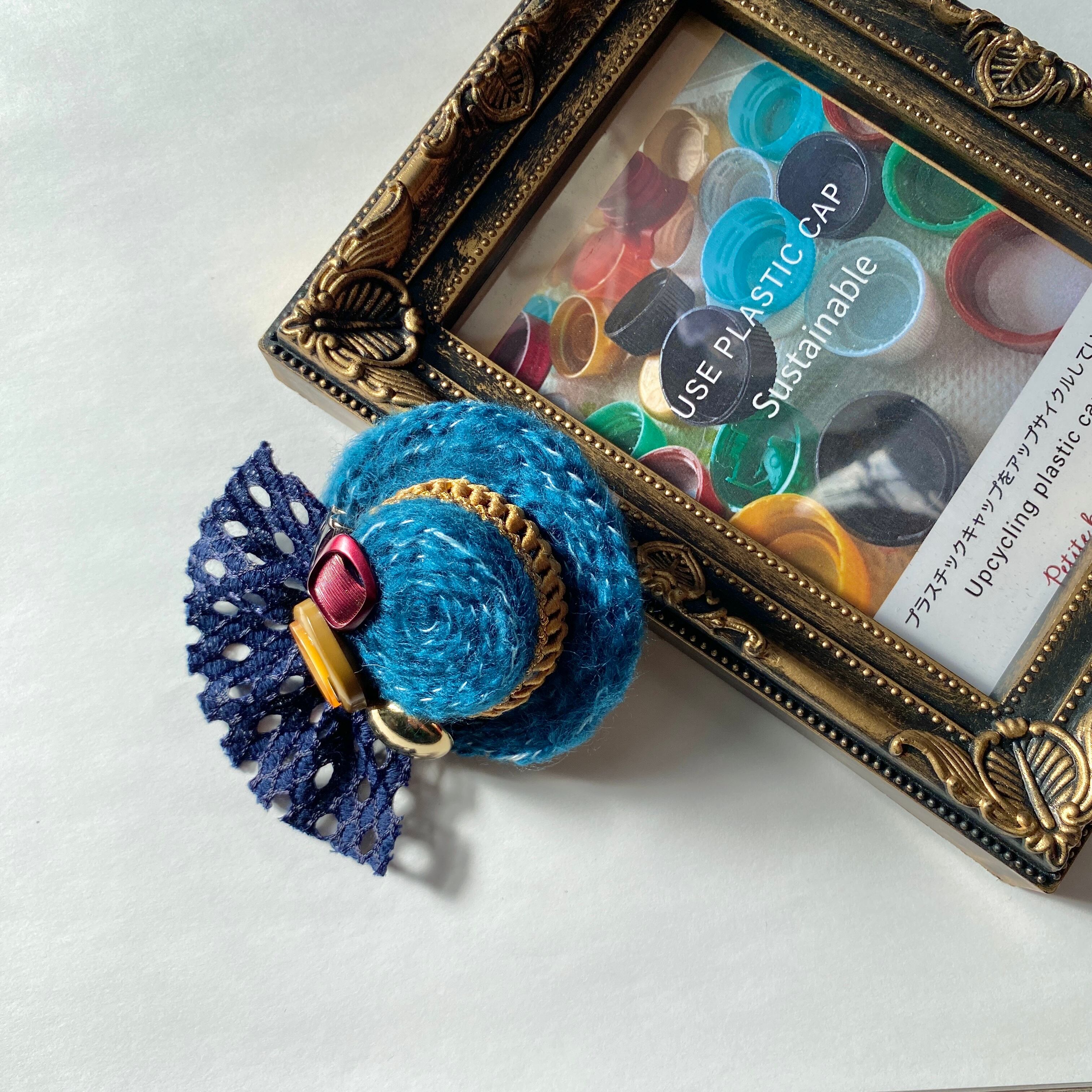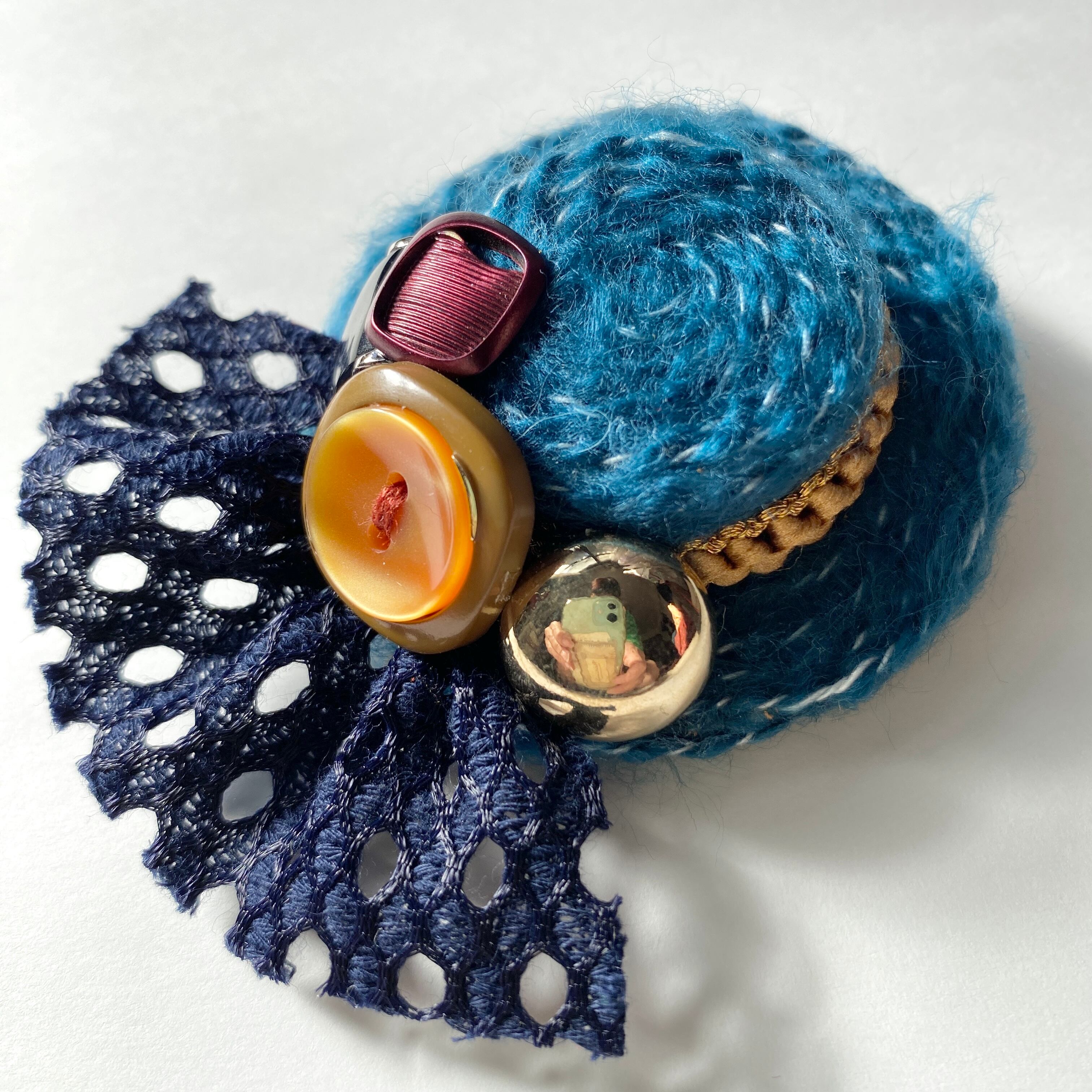 ⌘深いブルーがキレイなミニドレスのようなブローチ
