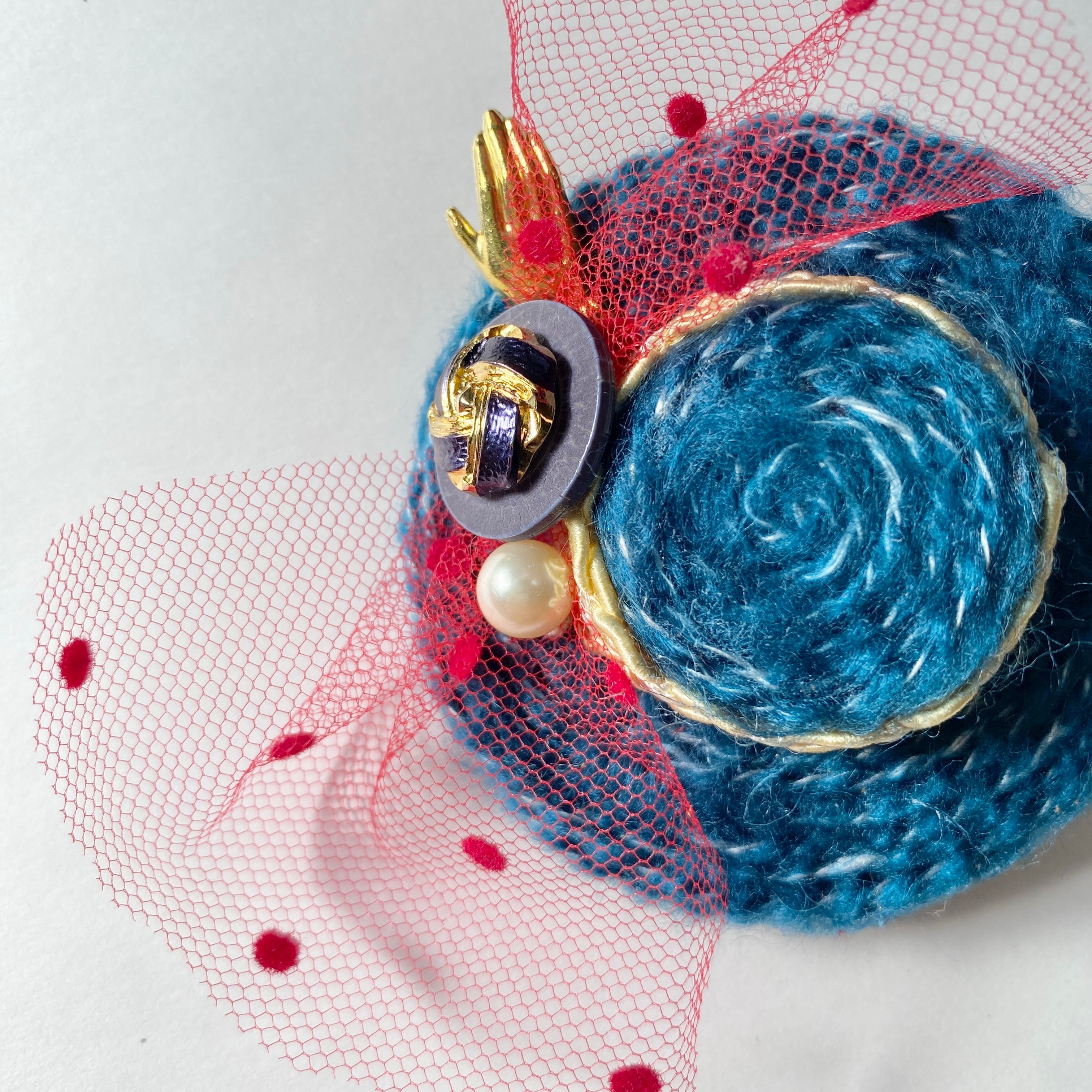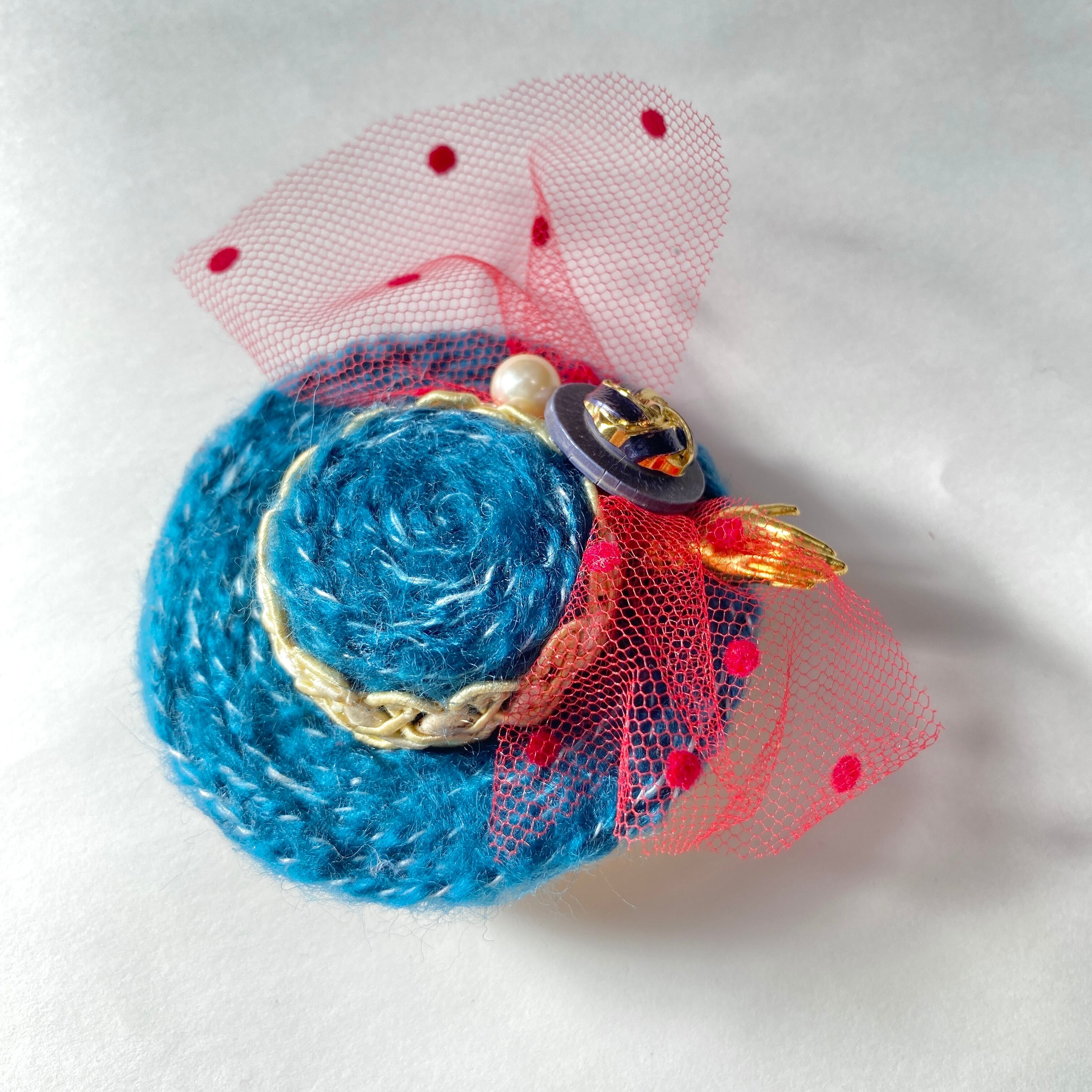 ⌘赤いチュールが使いがエモカワイイ♡レトロな手招きブローチ