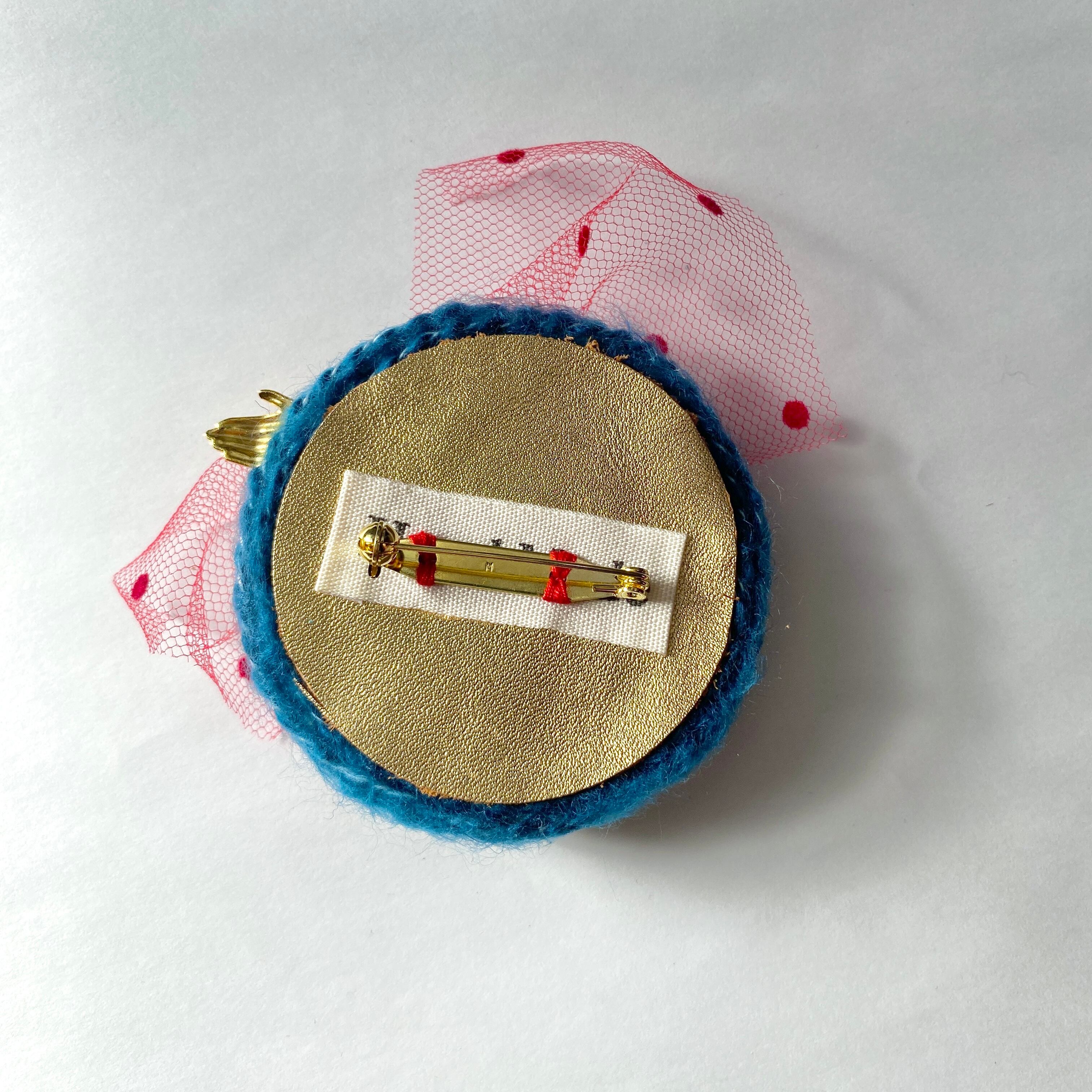 内側(ブローチピン側)には本革のハギレパッチを当てています