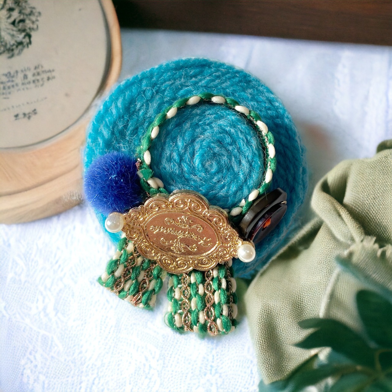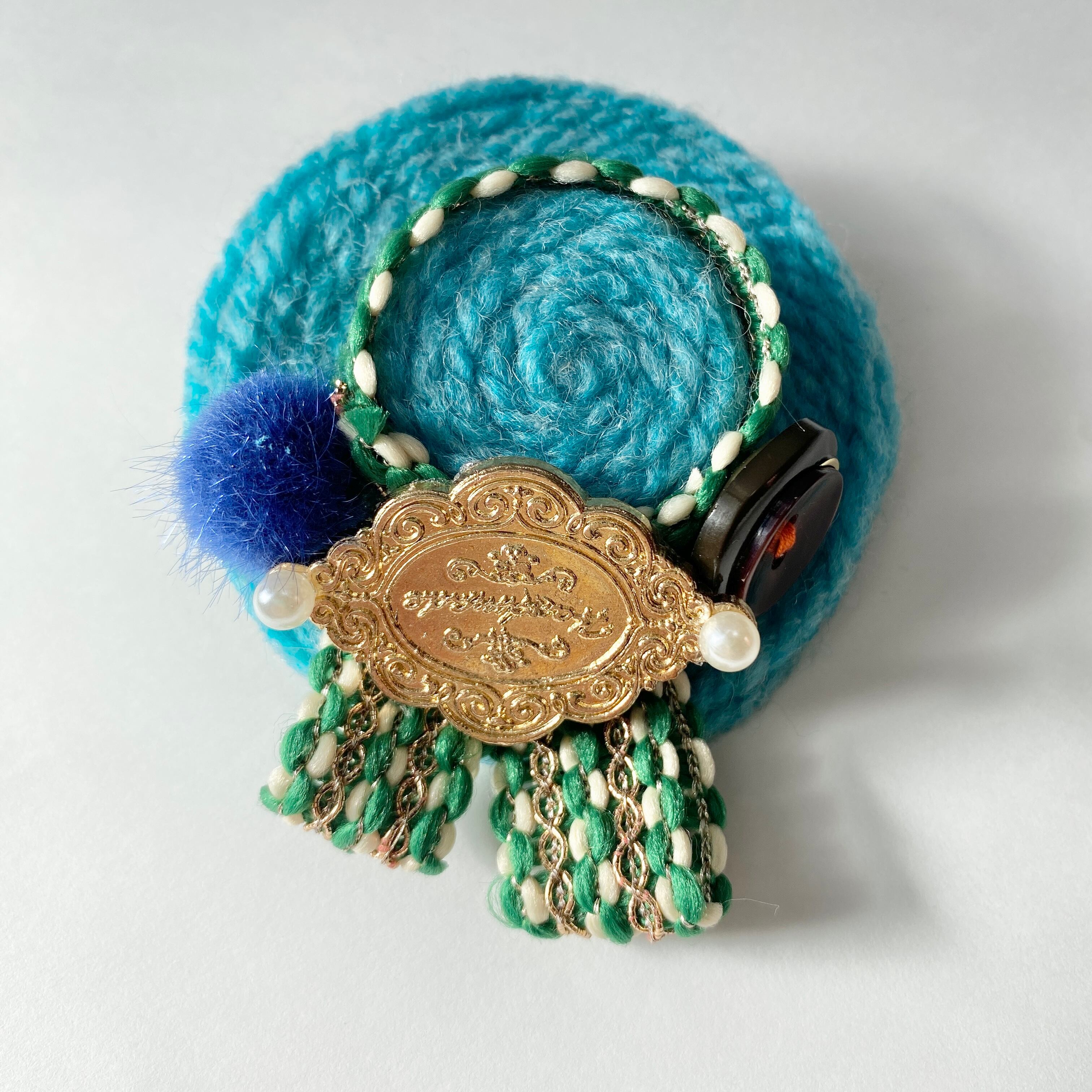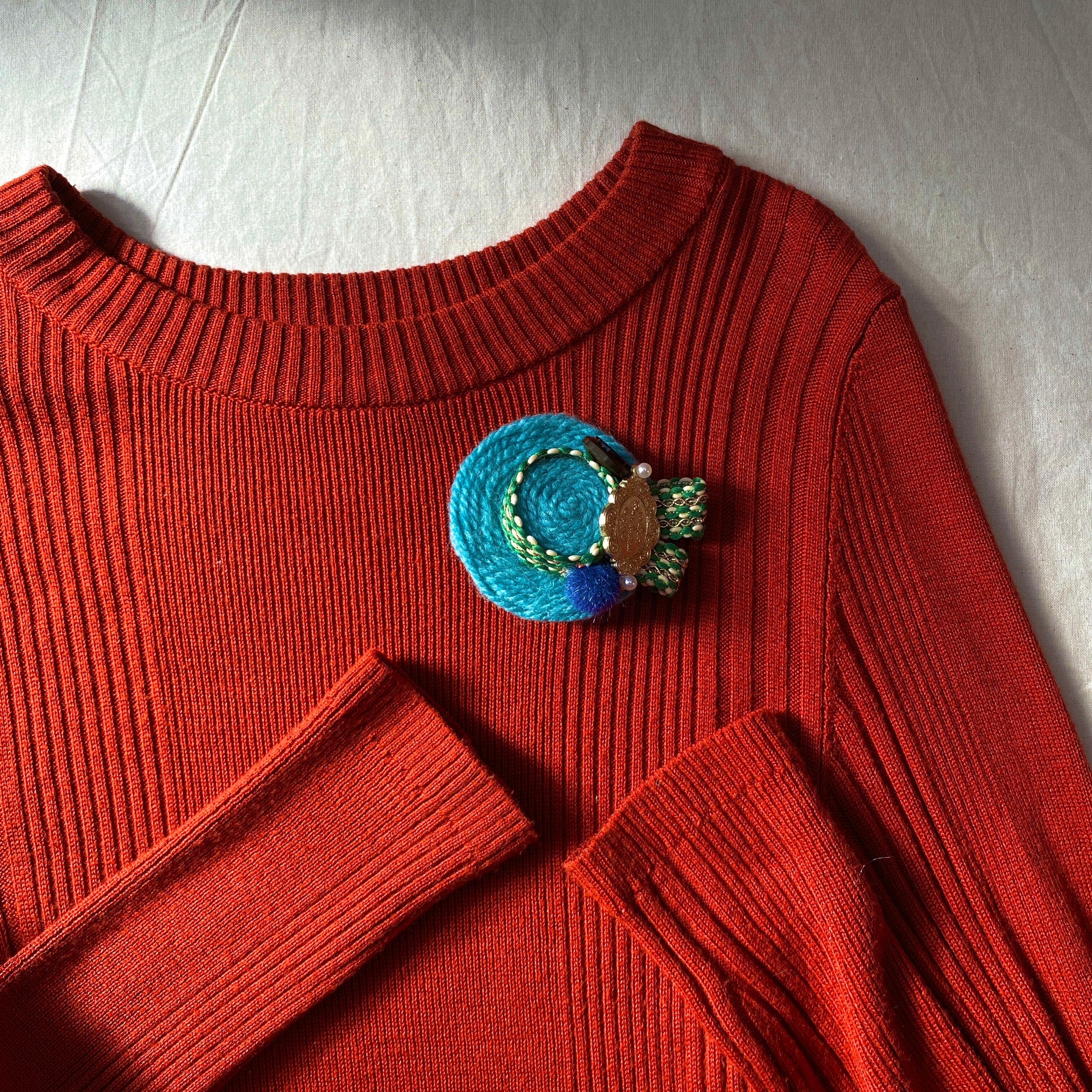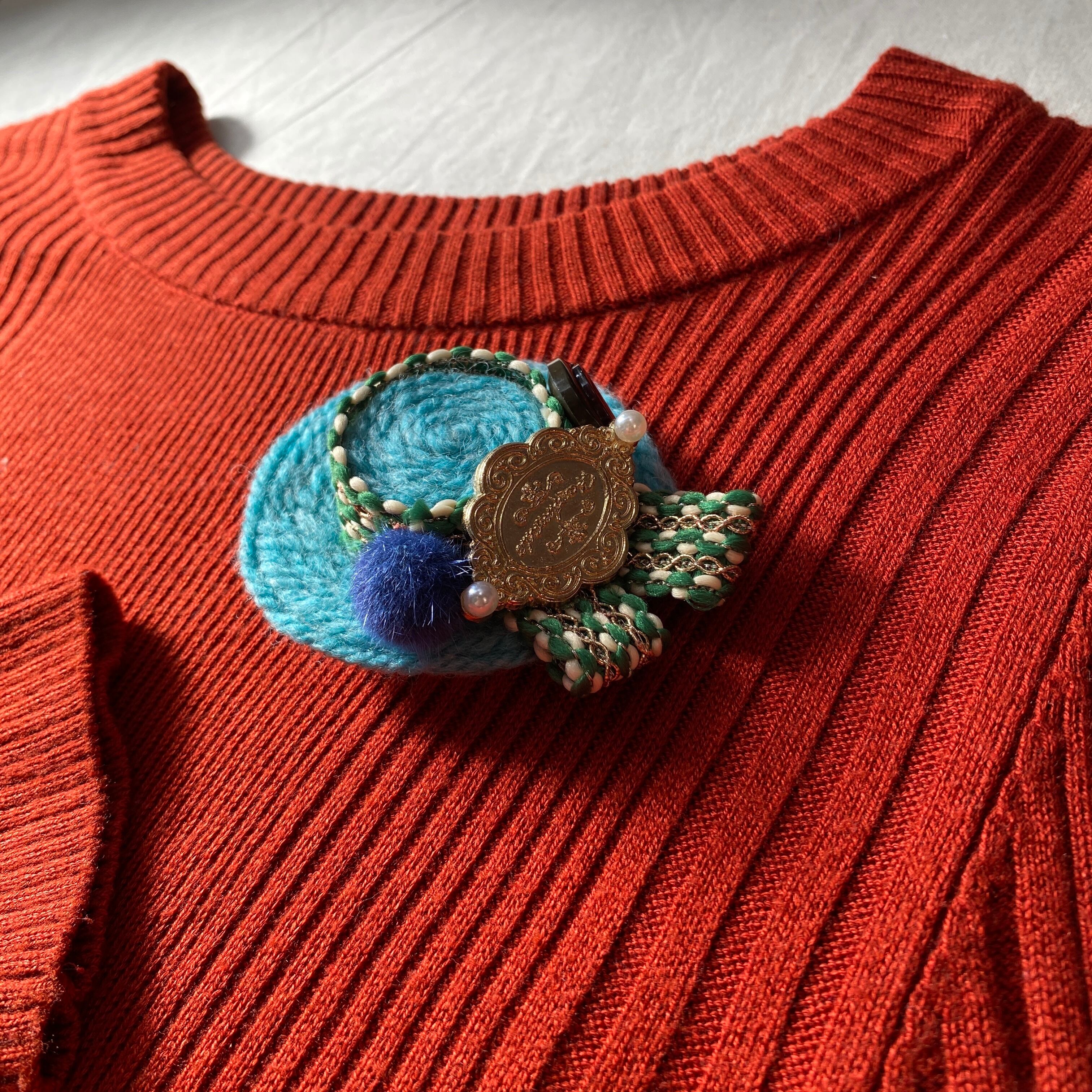 ⌘綺麗なスカイブルーニットの小さな帽子ブローチ