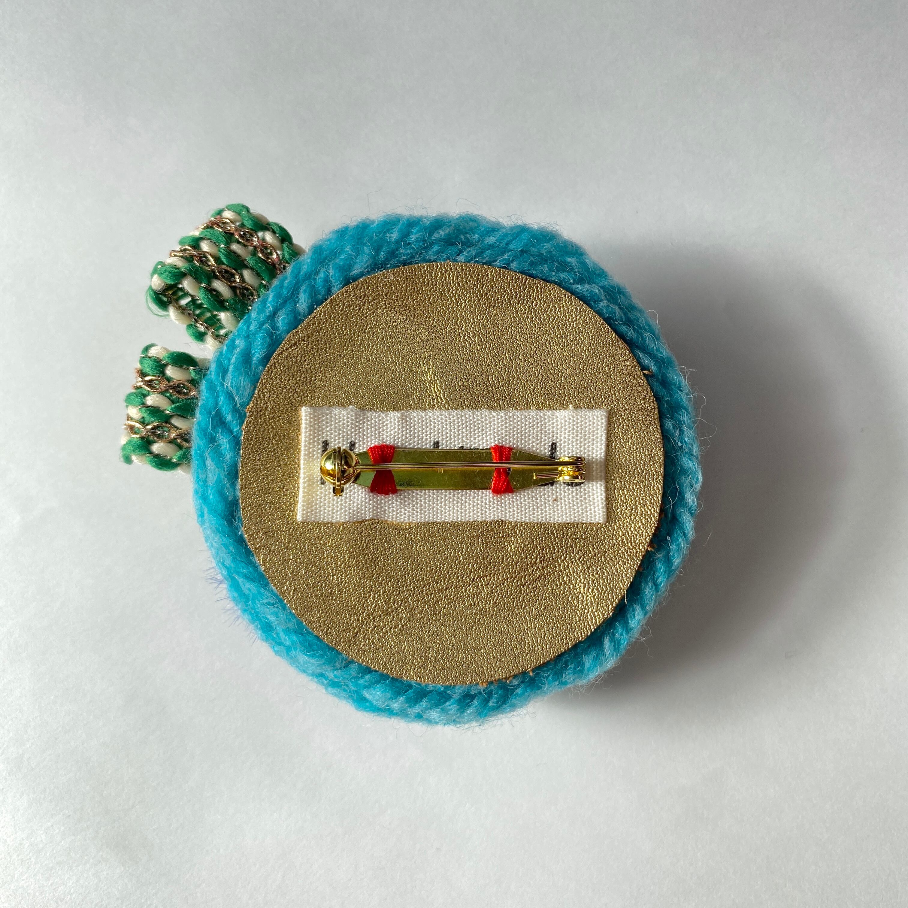 内側(ブローチピン側)には本革のハギレパッチを当てています