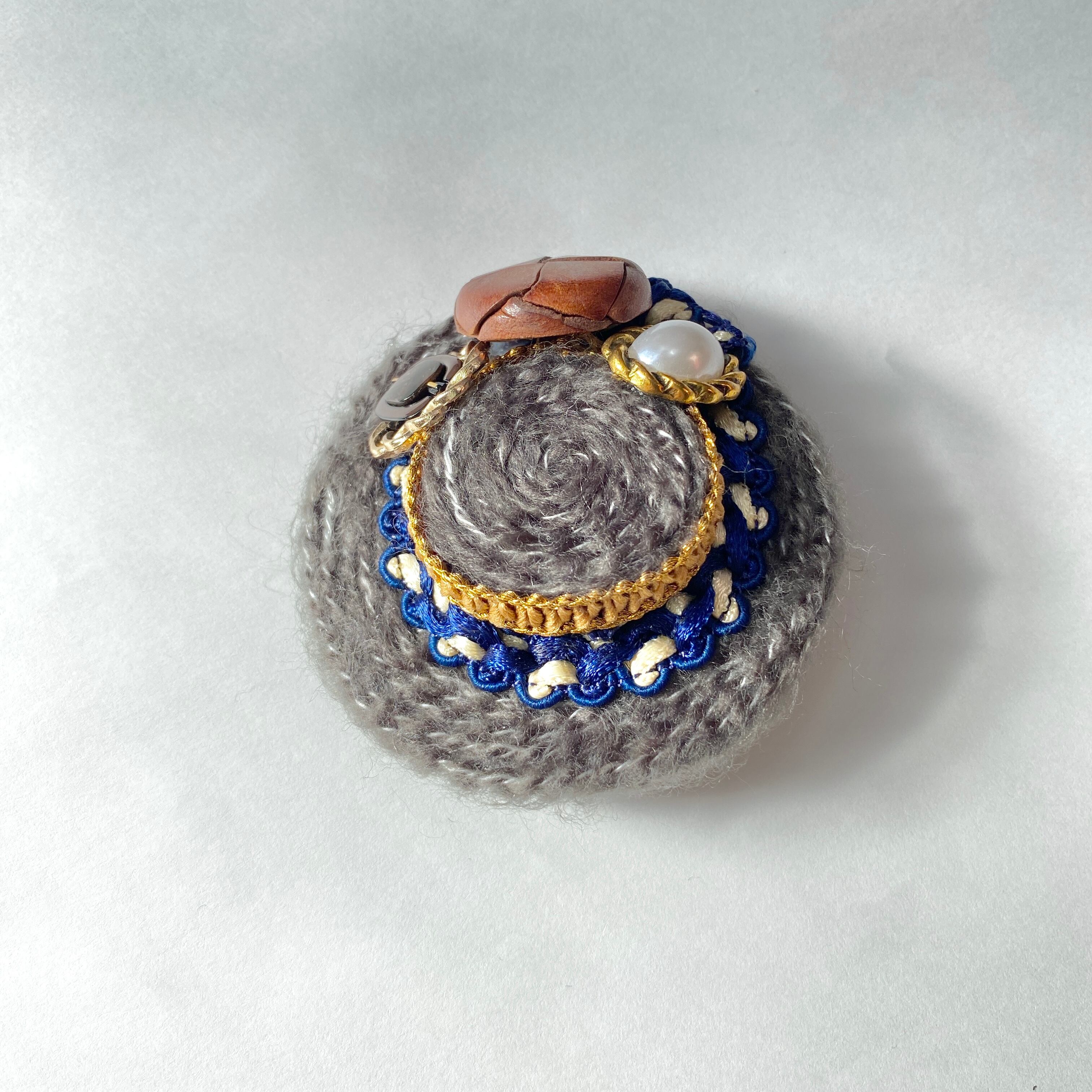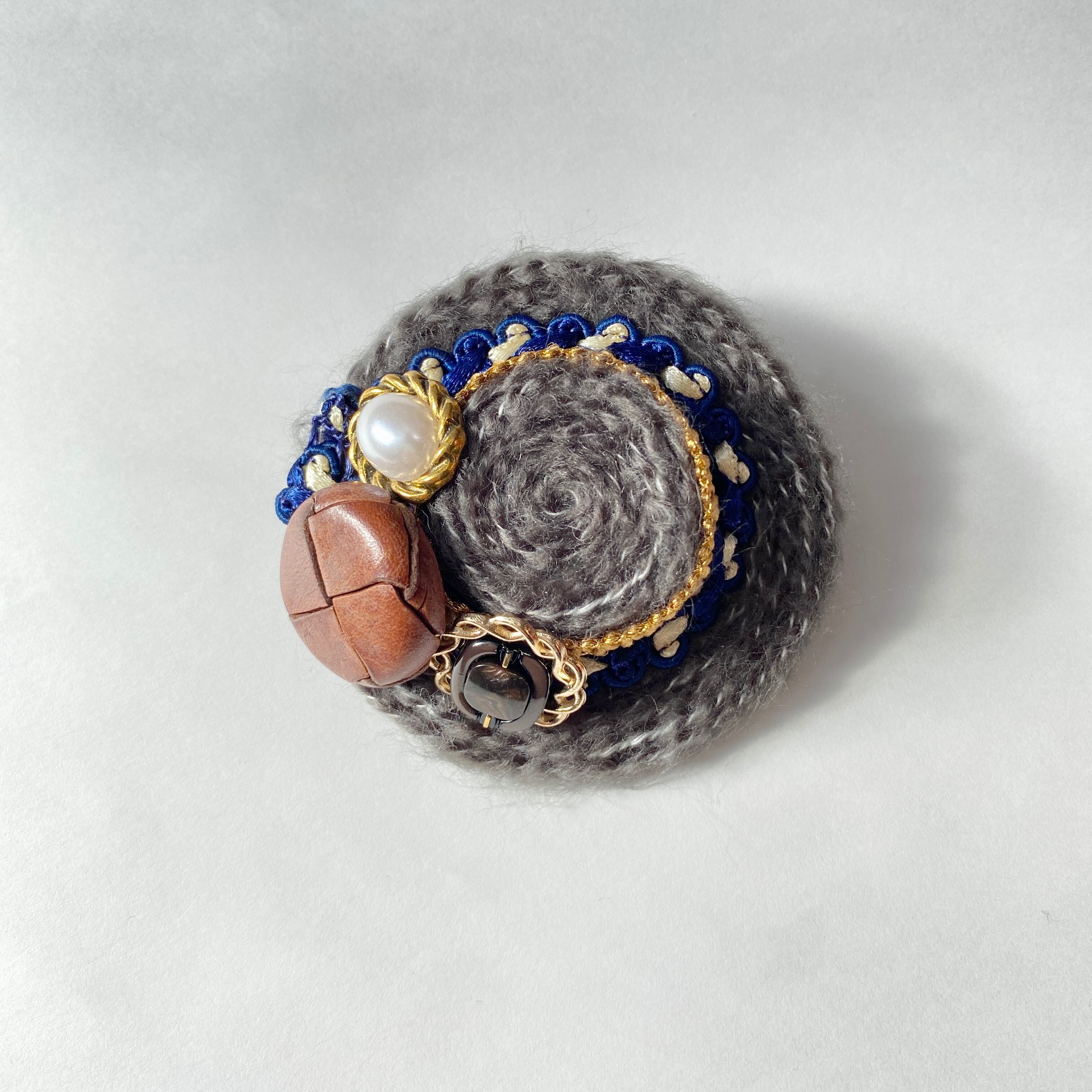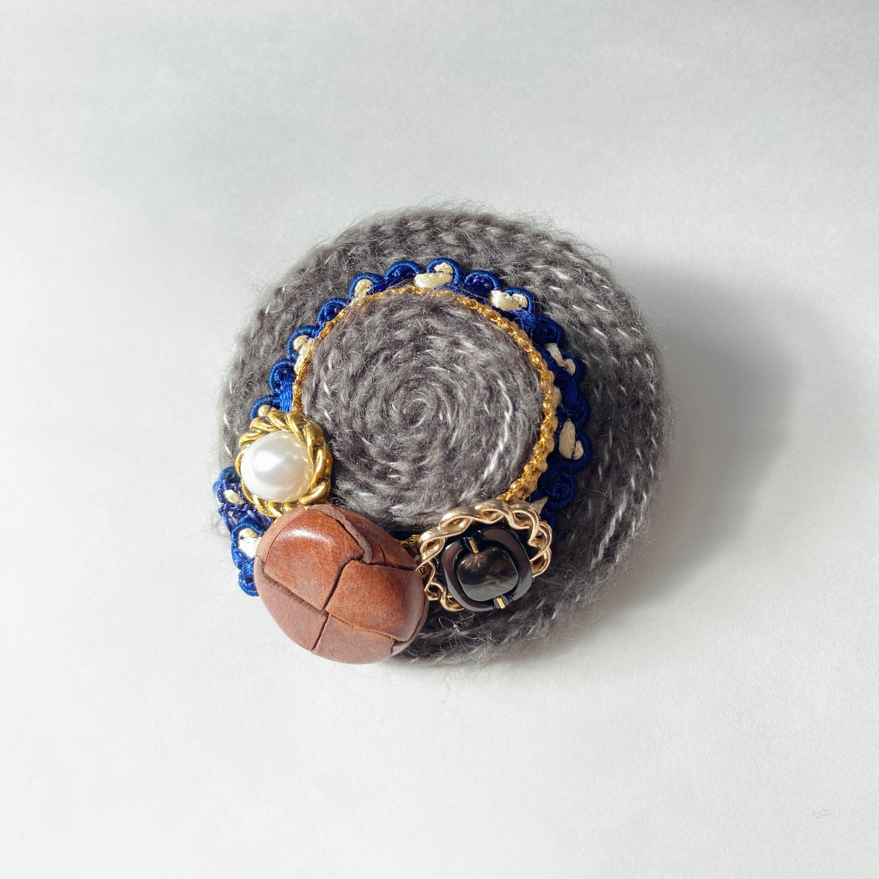 内側(ブローチピン側)には本革のハギレパッチを当てています